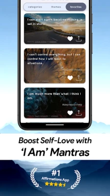 Pengalaman anda bersama Uplift diperkaya dengan ciri-ciri yang direka khas untuk kesejahteraan anda. Nikmati afirmasi yang disusun rapi dalam pelbagai kategori – dari cinta diri dan keyakinan, sokongan keresahan, hingga kerjaya dan kelimpahan – dengan penambahan kandungan baharu secara berkala. Anda boleh menyimpan afirmasi kegemaran, berkongsinya dengan mudah, dan memperibadikan peringatan harian anda. Aplikasi ini juga menampilkan imej latar belakang yang indah dan menenangkan untuk disesuaikan dengan mood anda, semuanya dalam antara muka yang bersih, ringan, dan tanpa sebarang gangguan iklan, memberikan tumpuan sepenuhnya kepada perjalanan pertumbuhan peribadi anda.