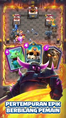 Selami dunia taktikal yang mendebarkan dengan Clash Royale, ciptaan Supercell yang dinamik. Pengalaman pertarungan PvP real-time ini menguji kemahiran strategi dan kecekapan pembinaan dek anda hingga ke had. Pilih daripada koleksi kad yang unik untuk membentuk dek pertempuran yang sempurna, kemudian susun strategi penempatan unit dan sihir anda di medan perang. Matlamat anda? Untuk menjatuhkan menara Raja dan menara Putera musuh dalam perlawanan berintensiti tinggi yang pantas dan penuh adrenalin.