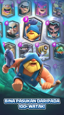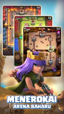 Kembara anda merangkumi pengumpulan dan peningkatan lebih daripada 100 kad ikonik, menampilkan askar, sihir, dan pertahanan yang anda kenali dan gemari dari alam semesta Clash of Clans, serta banyak lagi watak baharu yang menarik. Setiap kemenangan membuka kunci arena baharu, memperkaya koleksi anda dengan kad tambahan yang berkuasa. Berjuanglah untuk naik kedudukan, bersaing di liga dan kejohanan global untuk menentang para pemain terkemuka di dunia, semuanya demi kemegahan dan ganjaran eksklusif.