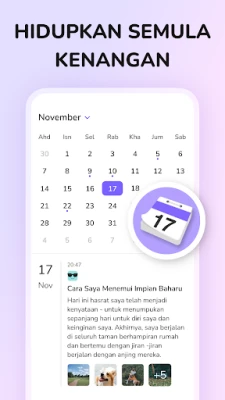 Atur kehidupan anda dengan mudah menggunakan ciri kalendar bersepadu Diari Harian. Rancang janji temu penting, acara, atau sekadar mengingatkan diri tentang matlamat harian anda. Fungsi peringatan harian pula membantu anda membina tabiat menjurnal yang konsisten, memastikan anda tidak terlepas peluang untuk mencatat ilham atau refleksi. Diari Harian adalah tempat di mana kenangan terpelihara dan masa depan dirancang, memberikan anda alat yang sempurna untuk pertumbuhan peribadi dan ketenangan fikiran.