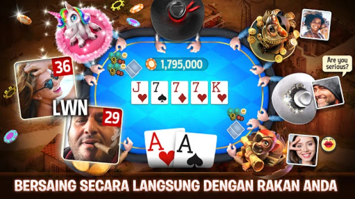 Sertai aksi poker dalam talian sekarang! Main Poker Texas Holdem di kasino sosial yang hebat, bersaing sebagai bintang poker berbilang pemain yang menyeronokkan dan terus berkembang. Rasai keseronokan permainan kad sosial yang mendebarkan.