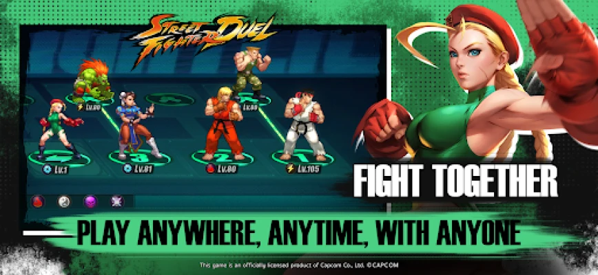Alami pengalaman yang berbeza dalam dunia Street Fighter dengan aplikasi ini. Ia menggabungkan strategi ringan, koleksi kad, RPG yang mendalam, dan elemen permainan clicker yang ketagihan untuk hiburan yang tidak pernah anda rasai.